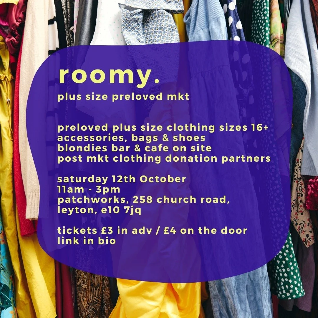 enter roomy! born out of wanting to shop preloved from all the incredible wardrobes I see online, and wanting to avoid buying things that won’t fit or suit me, it was clear an irl plus size preloved shopping experience was needed.